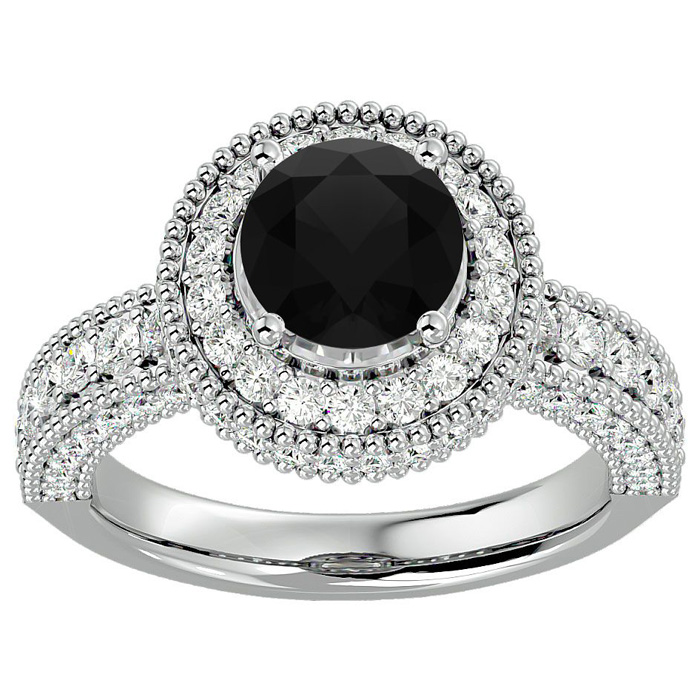2 3/4 Carat Black Diamond Halo Engagement Ring In 14 Karat Yellow Gold