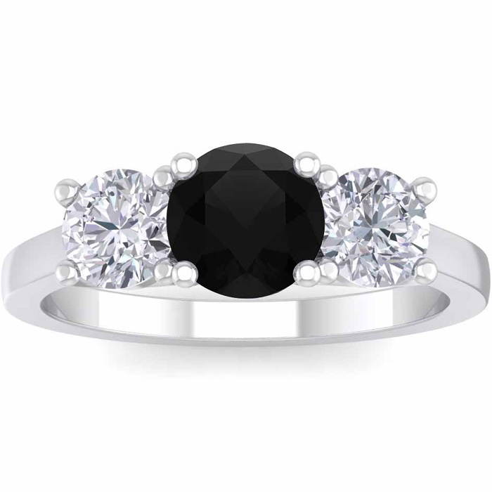 2 Carat Black Diamond Three Stone Ring In 14 Karat White Gold