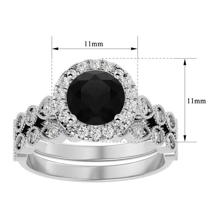 2 Carat Halo Black Diamond Bridal Set In 14 Karat White Gold