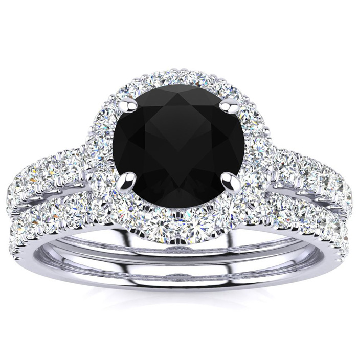 2 Carat Round Black Diamond Halo Bridal Set In 14 Karat White Gold
