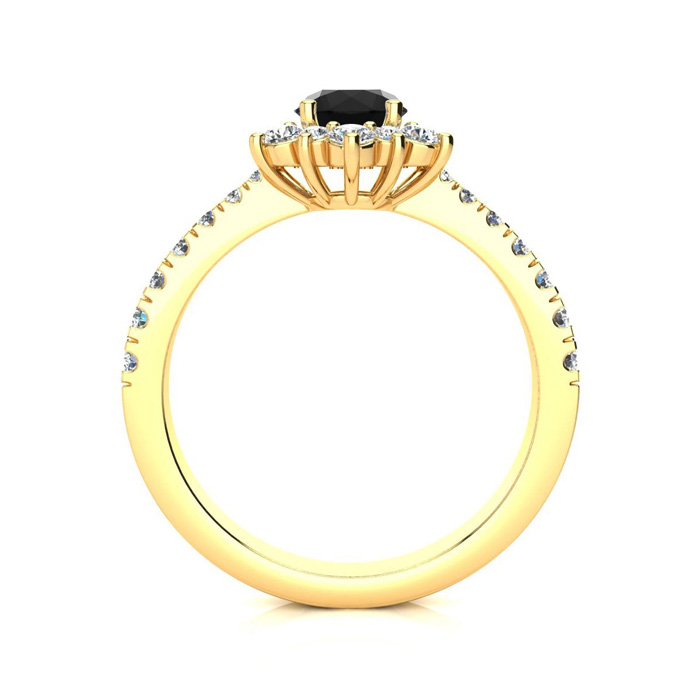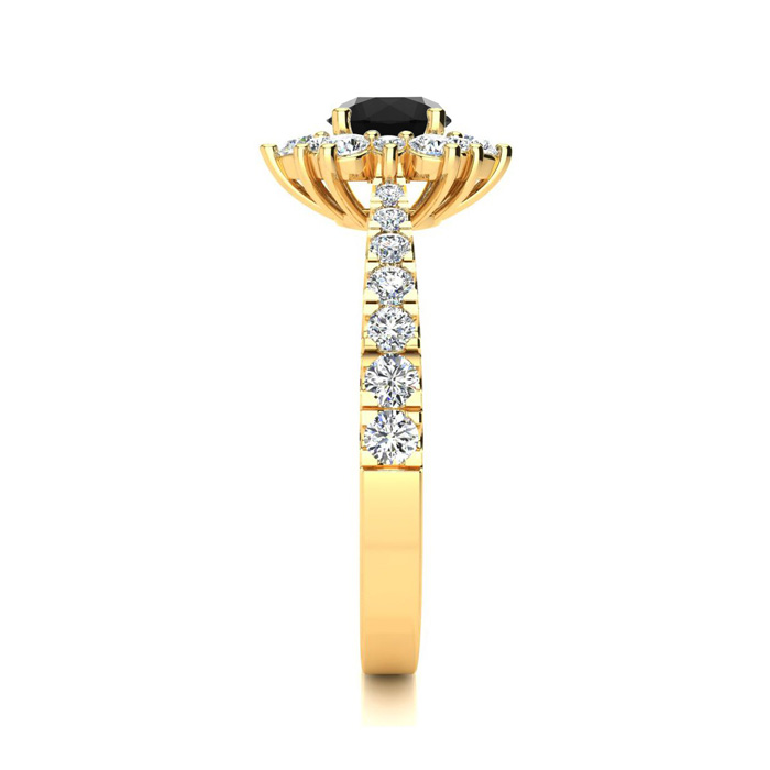 2 Carat Round Shape Flower Halo Black Diamond Engagement Ring In 14K Yellow Gold