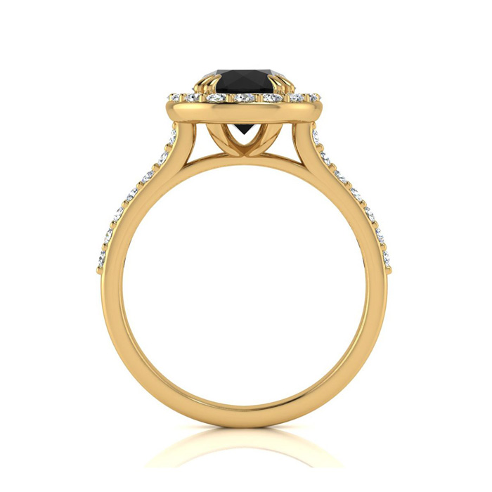 2 Carat Round Shape Halo Black Diamond Engagement Ring In 14 Karat Yellow Gold