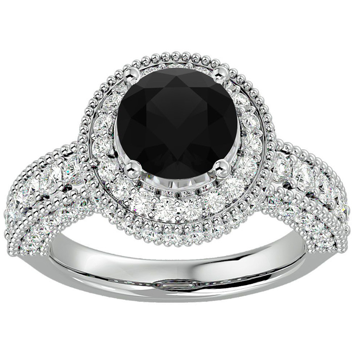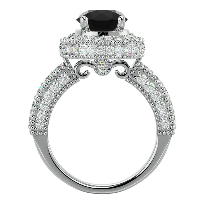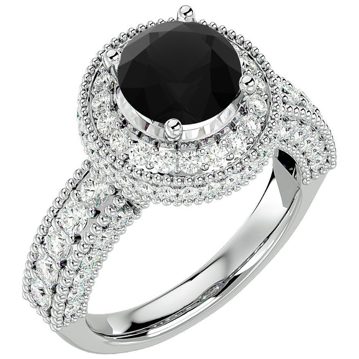 3 1/2 Carat Black Diamond Halo Engagement Ring In 14 Karat White Gold