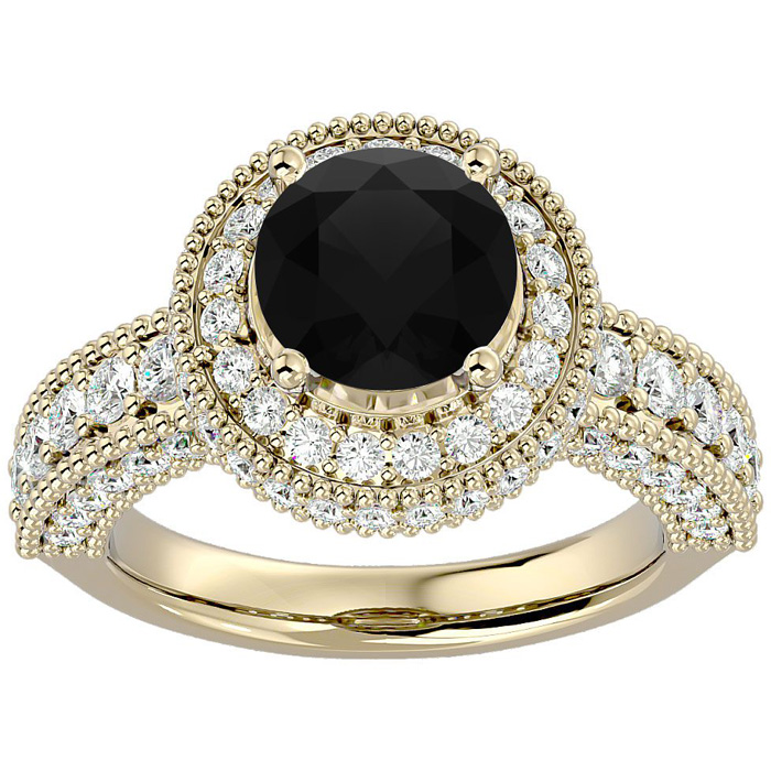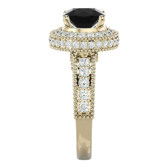 3 1/2 Carat Black Diamond Halo Engagement Ring In 14 Karat Yellow Gold