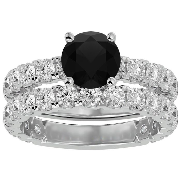 3 1/2 Carat Round Black Diamond Bridal Set In 14 Karat White Gold