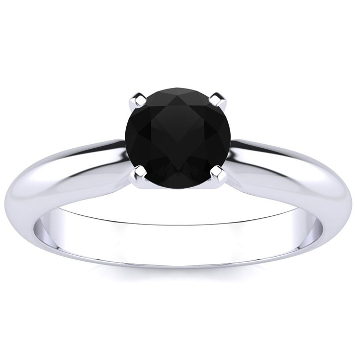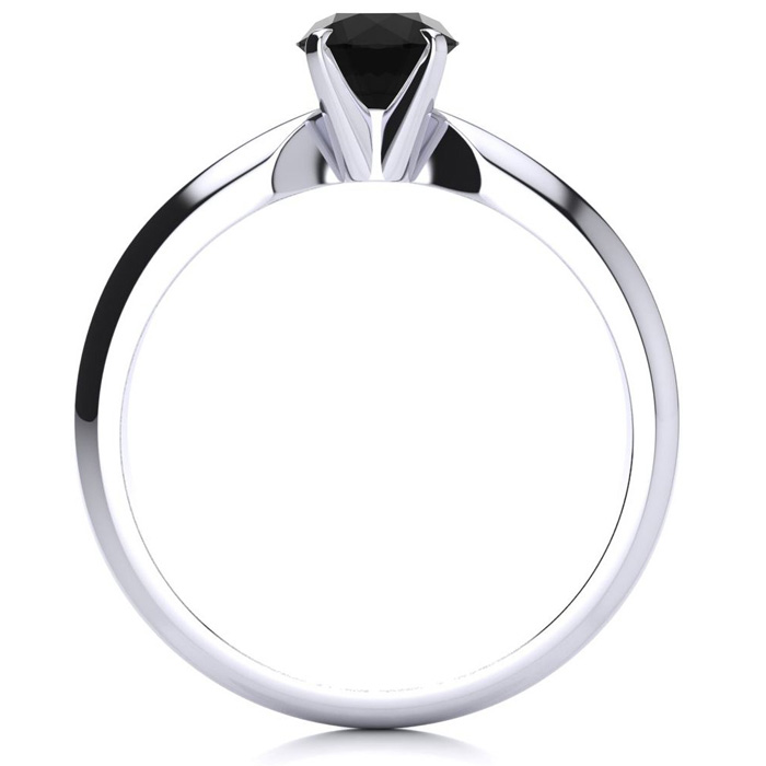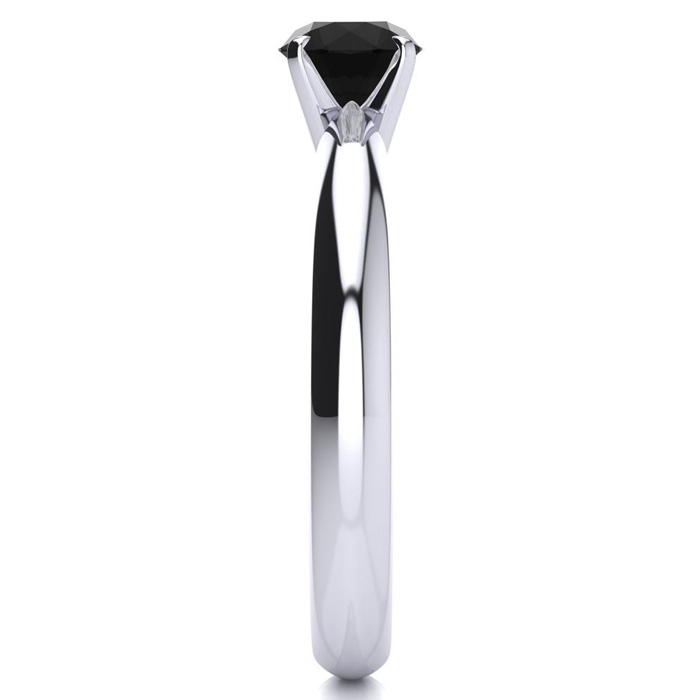 3/4 Carat Black Diamond Solitaire Engagement Ring In 14 Karat White Gold