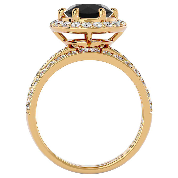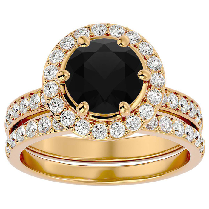 3 Carat Black Diamond Halo Bridal Set In 14 Karat Yellow Gold With 2 Carat Center Black Diamond