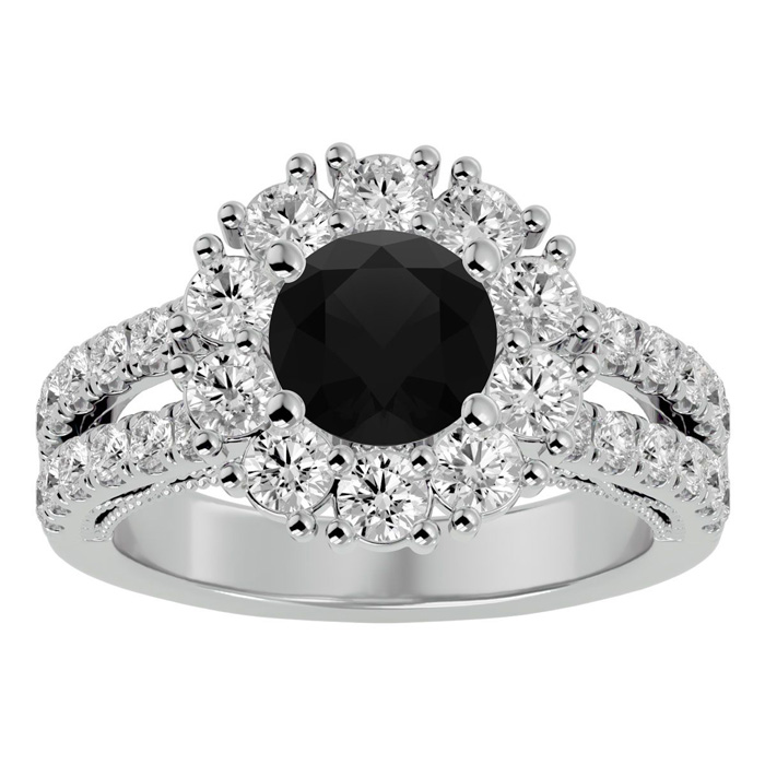 3 Carat Black Diamond Halo Engagement Ring In 14 Karat White Gold