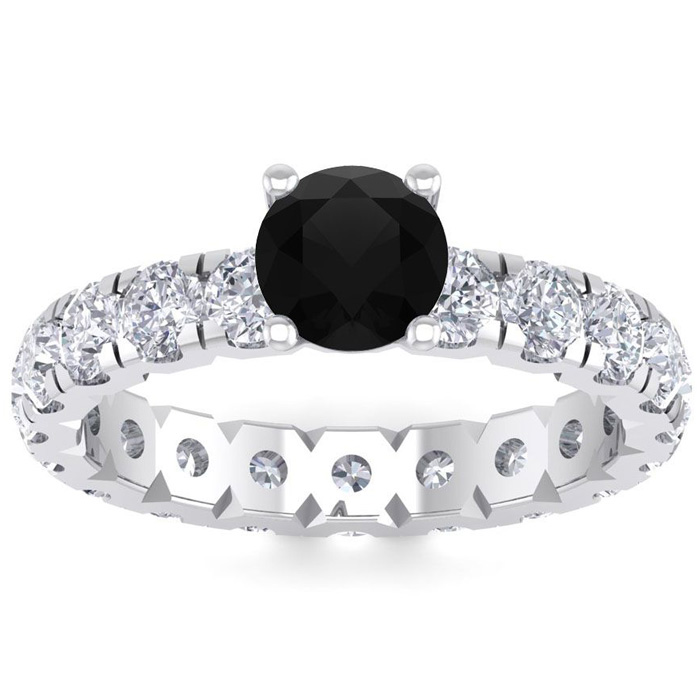 3 Carat Round Shape Black Diamond Eternity Engagement Ring In 14 Karat White Gold