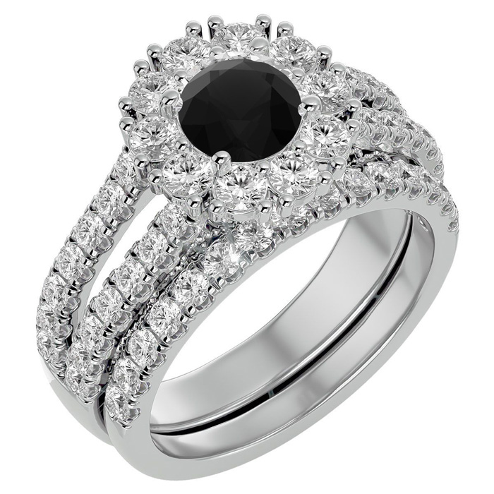 4 1/2 Carat Black Diamond Bridal Set In 14 Karat White Gold