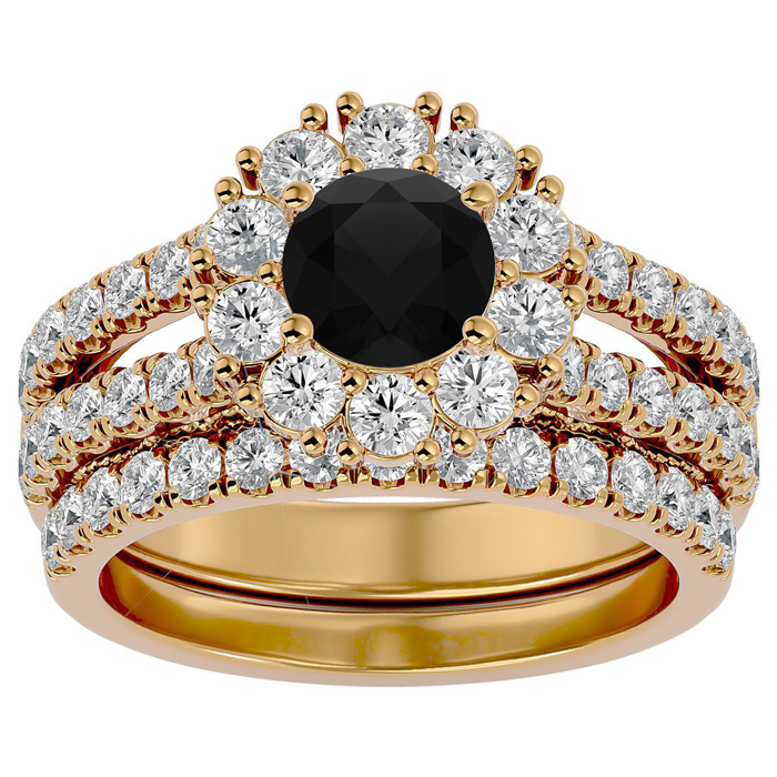 4 1/2 Carat Black Diamond Bridal Set In 14 Karat Yellow Gold