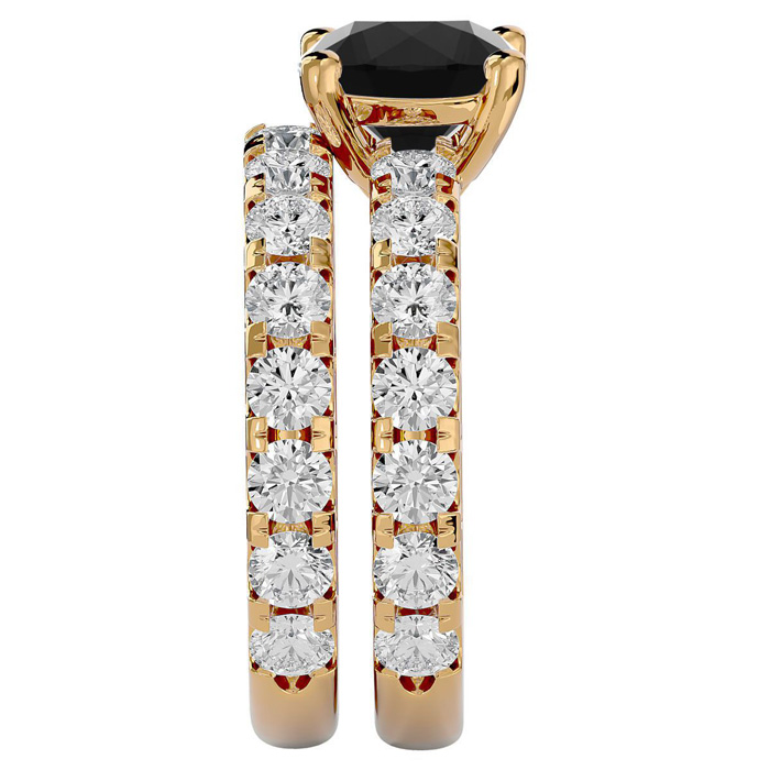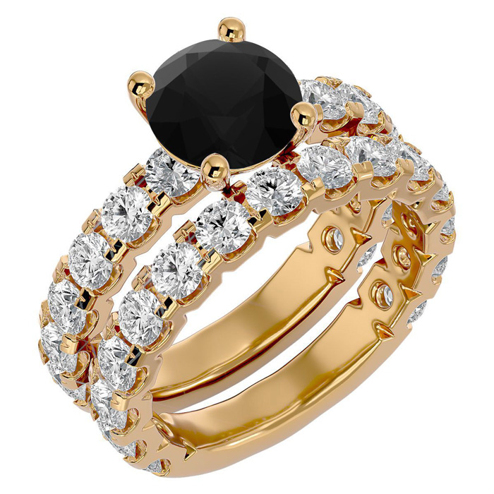 5 Carat Round Black Diamond Bridal Set In 14 Karat Yellow Gold