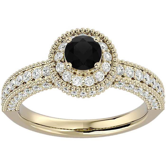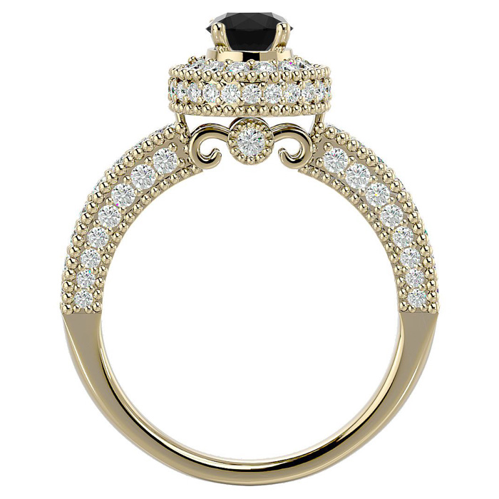 1 1/2 Carat Black Moissanite Halo Engagement Ring In 14 Karat Yellow Gold