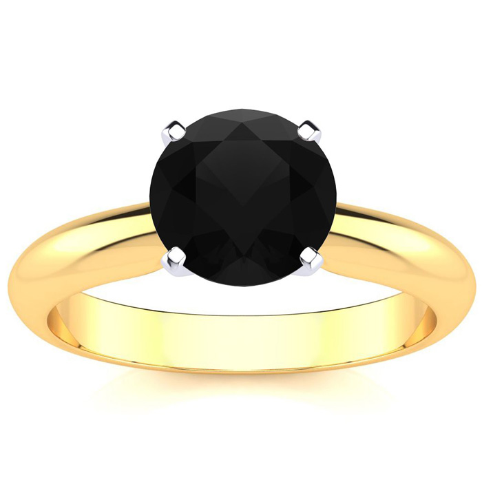 1 1/2 Carat Black Moissanite Solitaire Engagement Ring In 14 Karat Yellow Gold
