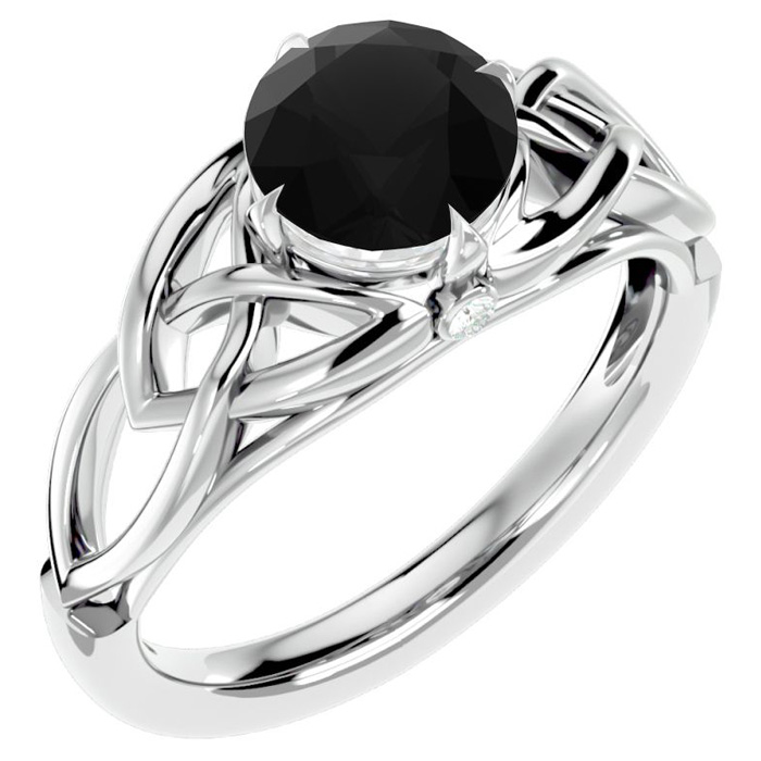 1 1/2 Carat Celtic Love Knot Black Moissanite Engagement Ring In 14 Karat White Gold