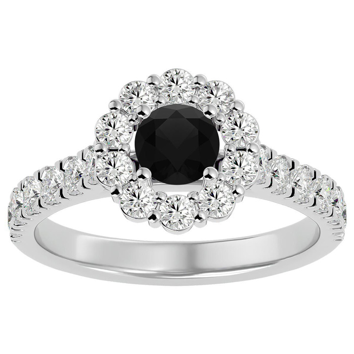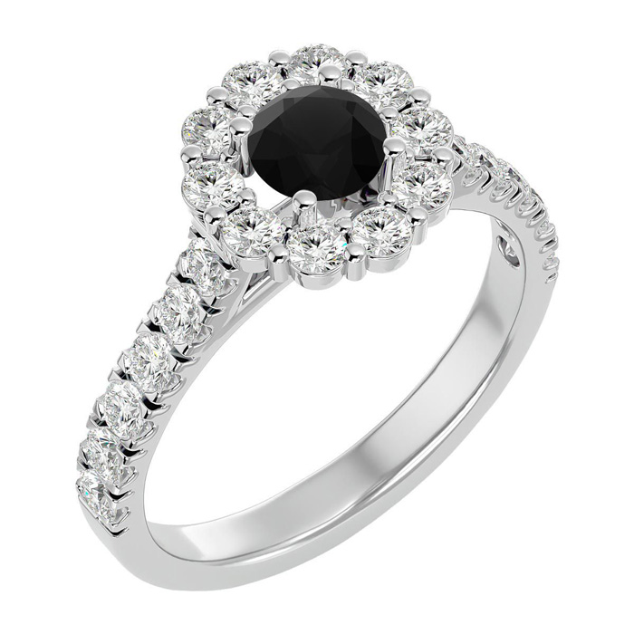 1 1/2 Carat Halo Black Moissanite Engagement Ring In 14 Karat White Gold