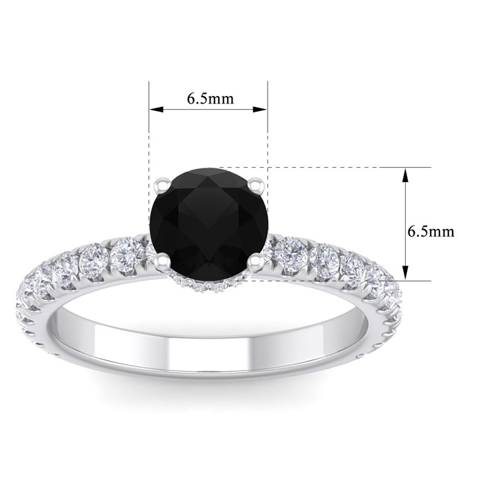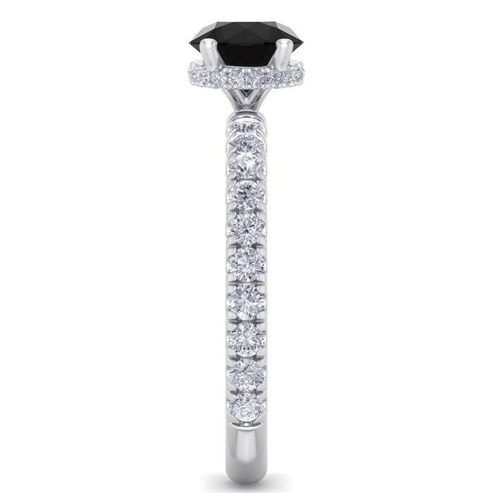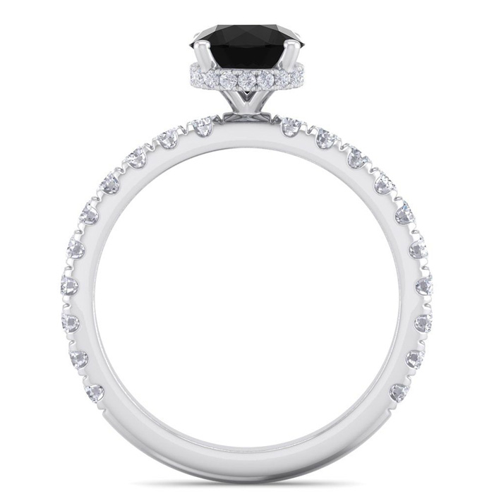 1 1/2 Carat Round Shape Hidden Halo Black Moissanite Engagement Ring In 14 Karat White Gold