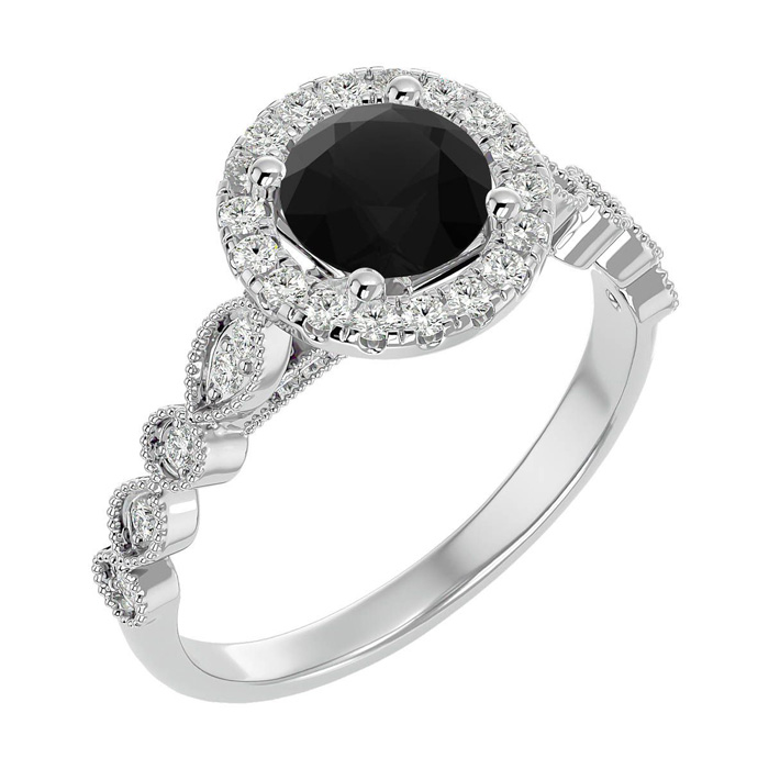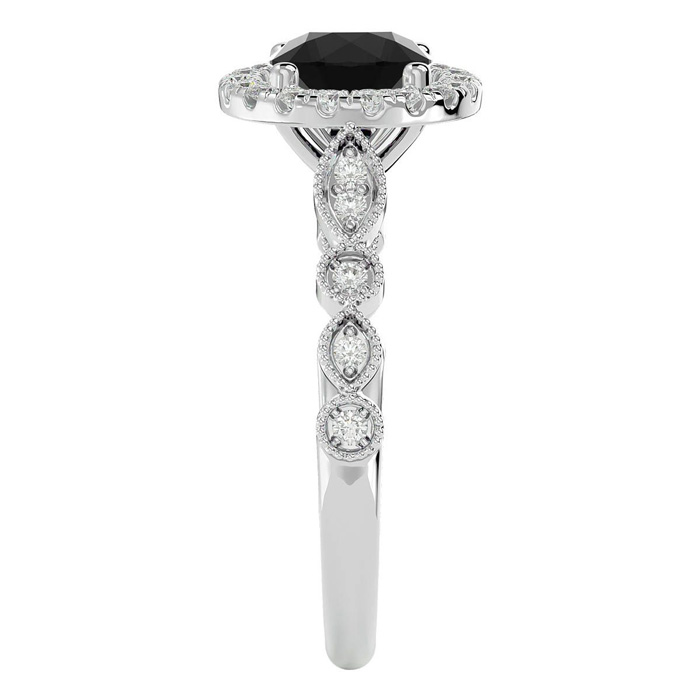 1 1/3 Carat Halo Black Moissanite Engagement Ring In 14 Karat White Gold