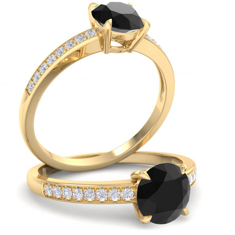 1 1/4 Carat Black Moissanite Engagement Ring In 14K Yellow Gold