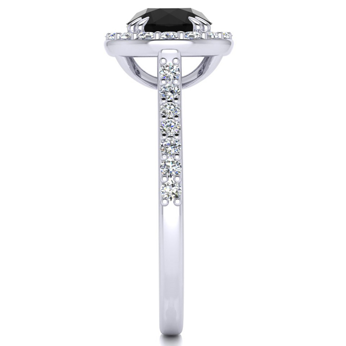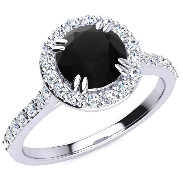 1 1/4 Carat Round Shape Halo Black Moissanite Engagement Ring In 14 Karat White Gold