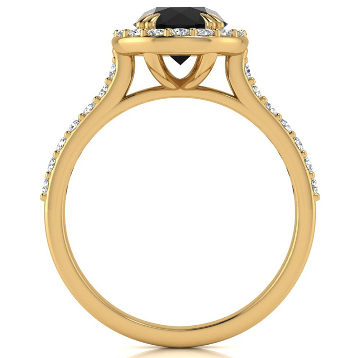 1 1/4 Carat Round Shape Halo Black Moissanite Engagement Ring In 14 Karat Yellow Gold
