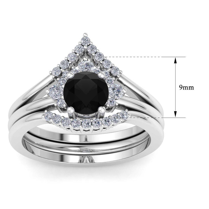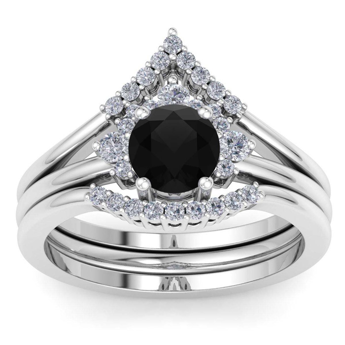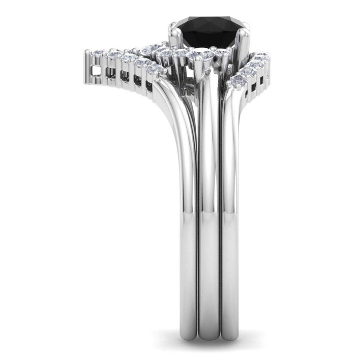 1 1/5 Carat Black Moissanite Bridal Set With Crown In 14 Karat White Gold