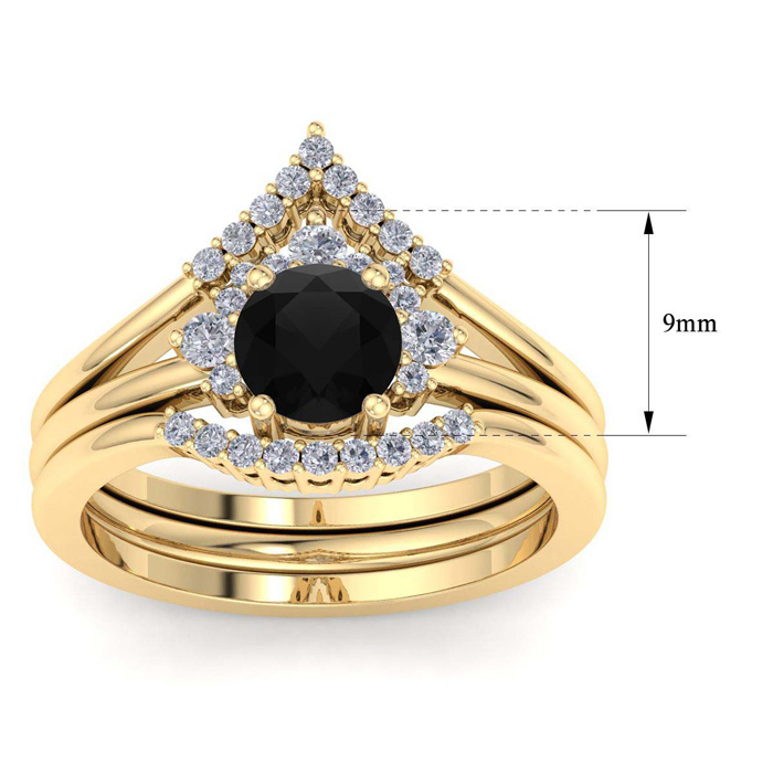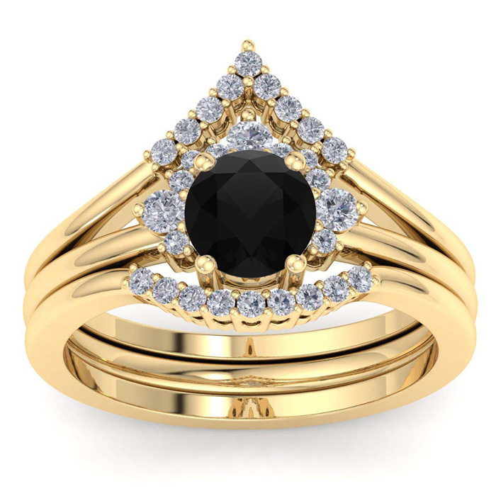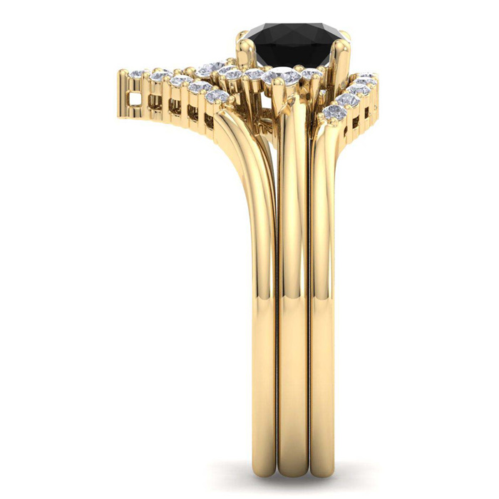 1 1/5 Carat Black Moissanite Bridal Set With Crown In 14 Karat Yellow Gold