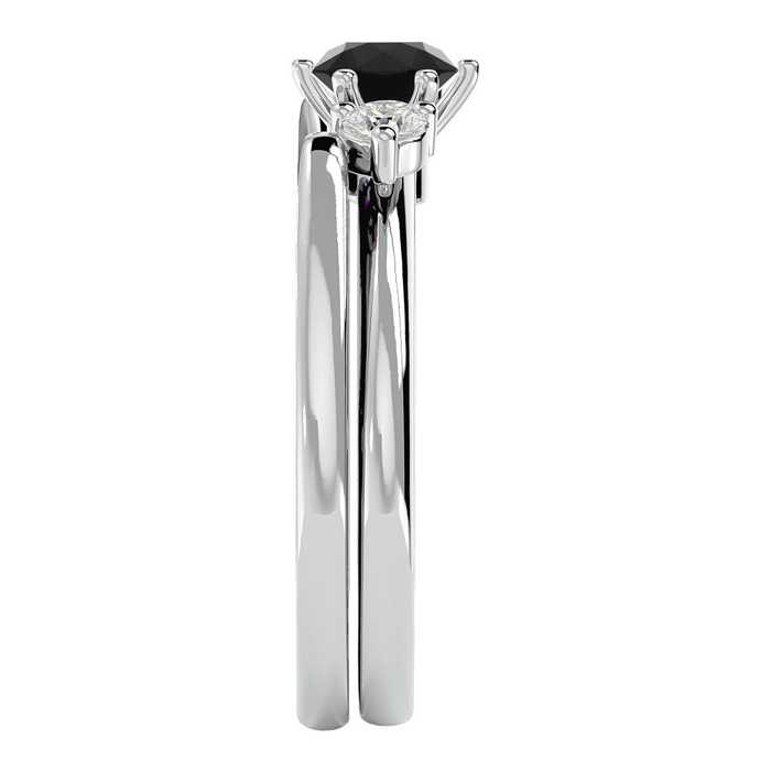 1/2 Carat Black Moissanite Solitaire Ring With 1/5 Carat Enhancer In 14 Karat White Gold