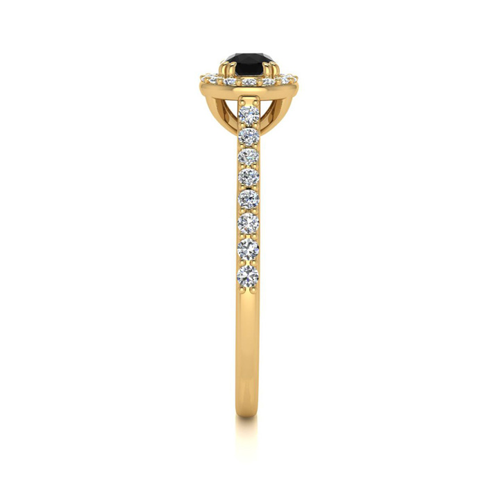 1/2 Carat Round Shape Halo Black Moissanite Engagement Ring In 14 Karat Yellow Gold
