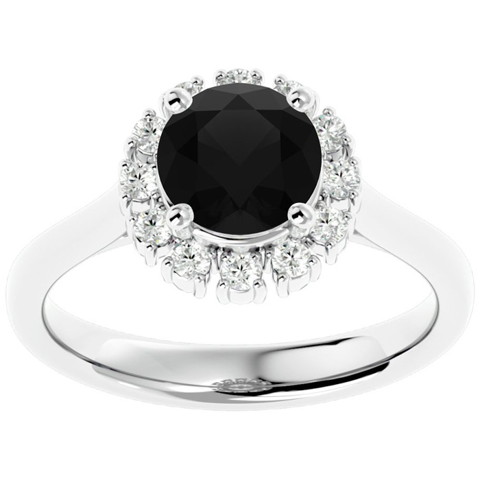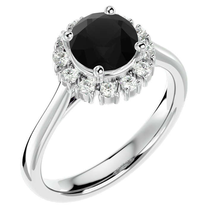 1 3/4 Carat Halo Black Moissanite Engagement Ring In 14 Karat White Gold