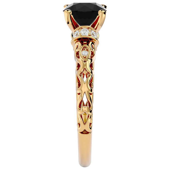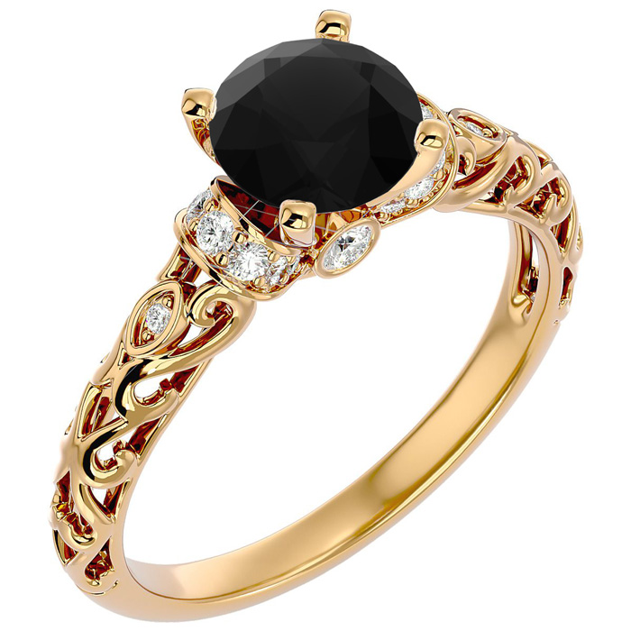 1 3/4 Carat Vintage Black Moissanite Engagement Ring In 14 Karat Yellow Gold