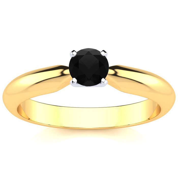 1/4 Carat Black Moissanite Solitaire Engagement Ring In 14 Karat Yellow Gold