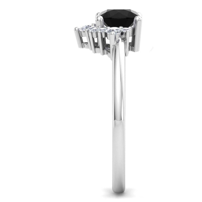 1 Carat Black Moissanite Engagement Ring With Crown In 14 Karat White Gold