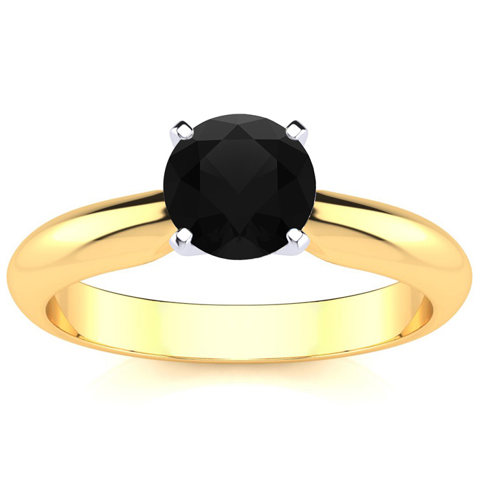 1 Carat Black Moissanite Solitaire Engagement Ring In 14 Karat Yellow Gold