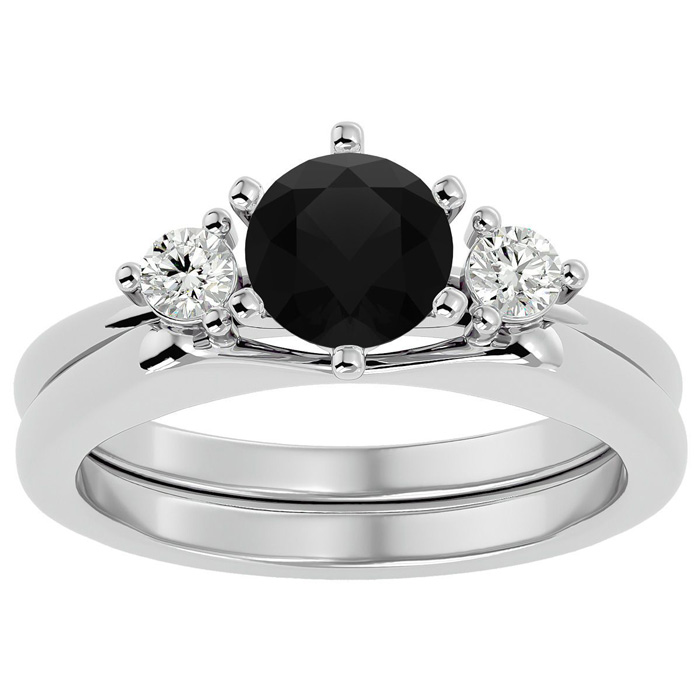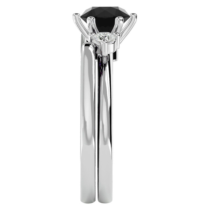 1 Carat Black Moissanite Solitaire Ring With 1/5 Carat Enhancer In 14 Karat White Gold