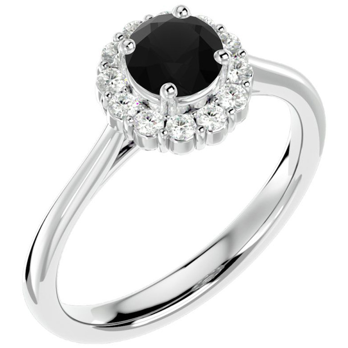 1 Carat Halo Black Moissanite Engagement Ring In 14 Karat White Gold