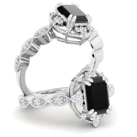 1 Carat Octagon Shape Black Moissanite Ring In 14K White Gold