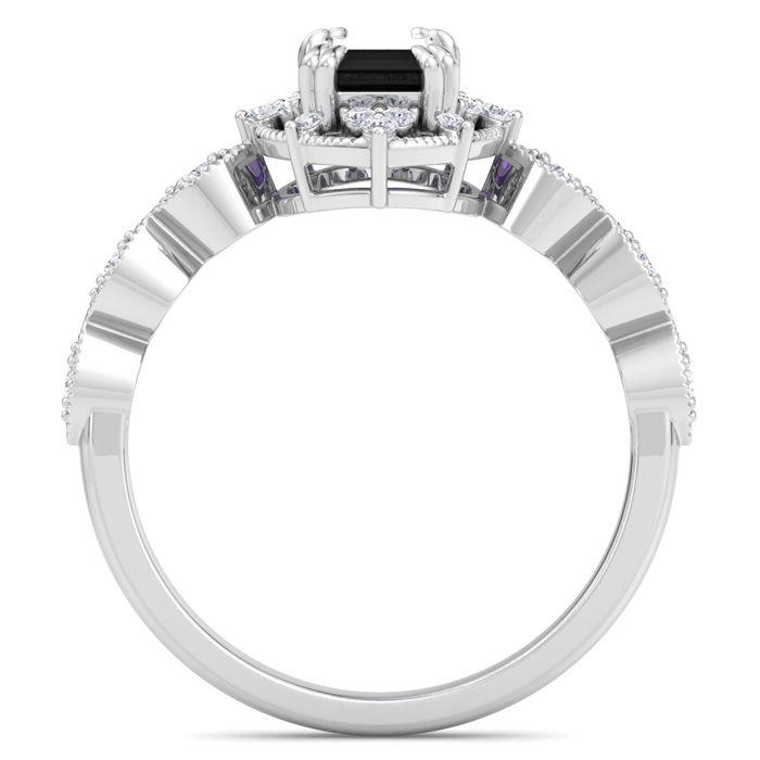 1 Carat Octagon Shape Black Moissanite Ring In 14K White Gold