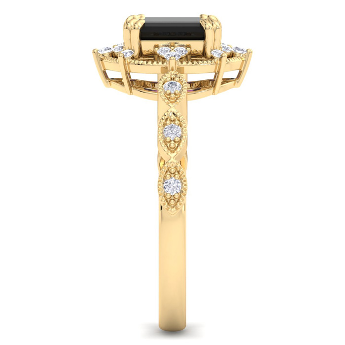 1 Carat Octagon Shape Black Moissanite Ring In 14K Yellow Gold