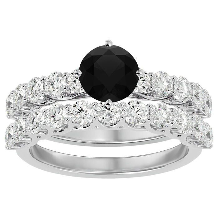 2 1/2 Carat Black Moissanite Bridal Set In 14 Karat White Gold