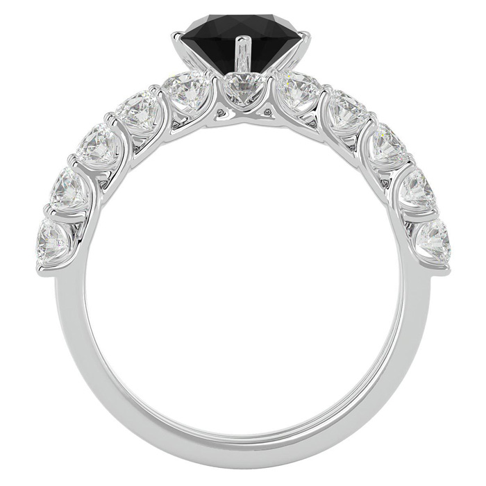 This fabulous moissanite bridal set features a sparkling 1 carat round shape center black moissanite in VVS1-VVS2 clarity. It is surrounded by 21 side moissanites between the ring and band totaling 1 1/2 carats. Total carat weight is 2 1/2 carats. This ring is in 14 karat white gold.