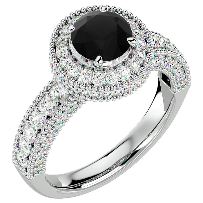 2 1/2 Carat Black Moissanite Halo Engagement Ring In 14 Karat White Gold