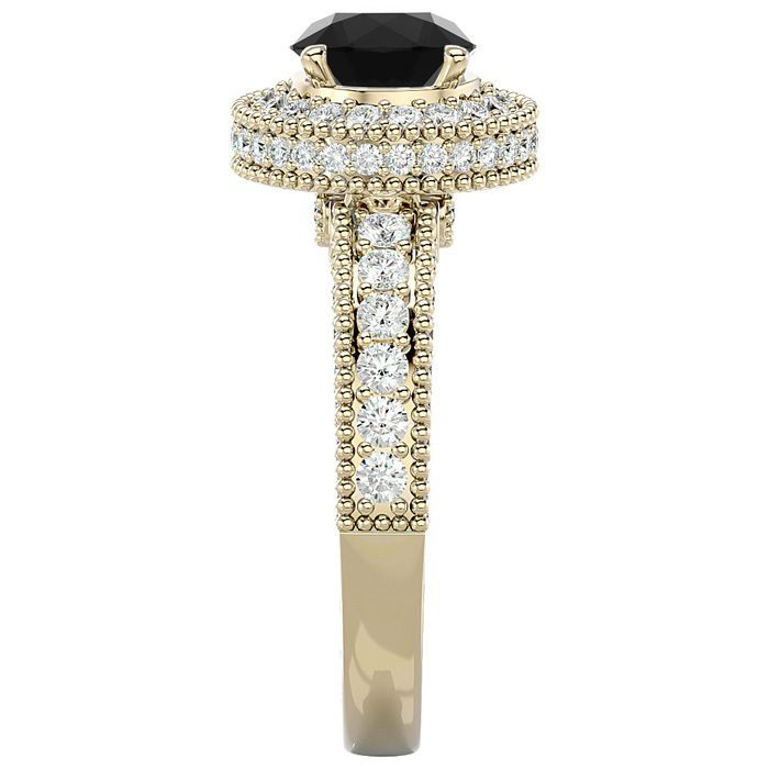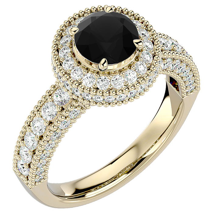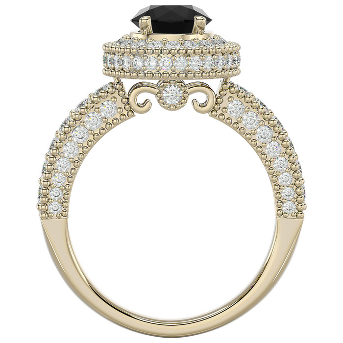 2 1/2 Carat Black Moissanite Halo Engagement Ring In 14 Karat Yellow Gold