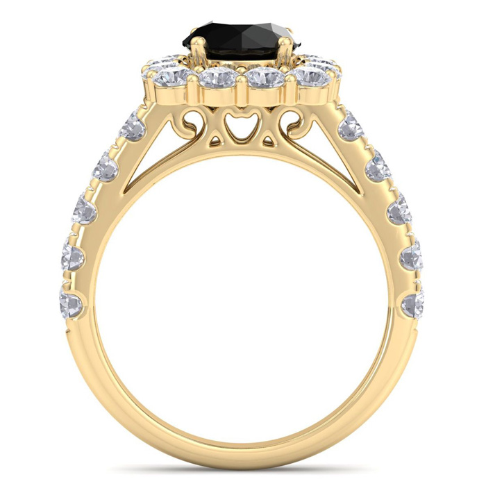 2 1/2 Carat Halo Black Moissanite Engagement Ring In 14K Yellow Gold