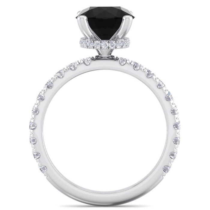 2 1/2 Carat Round Shape Hidden Halo Black Moissanite Engagement Ring In 14 Karat White Gold