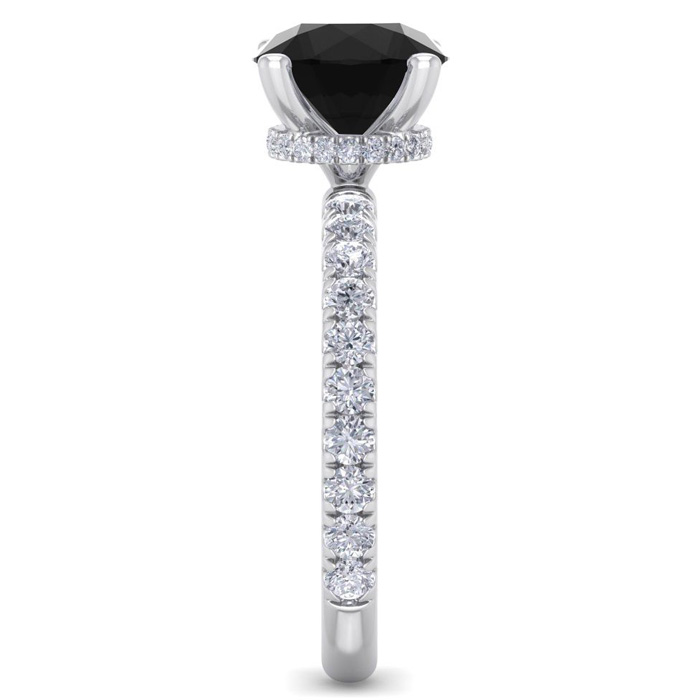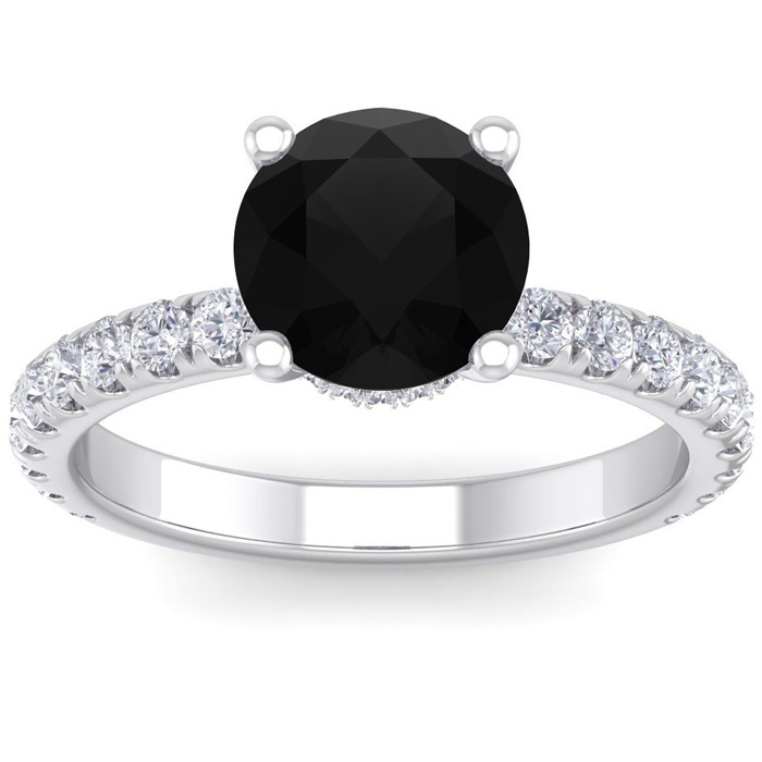 2 1/2 Carat Round Shape Hidden Halo Black Moissanite Engagement Ring In 14 Karat White Gold