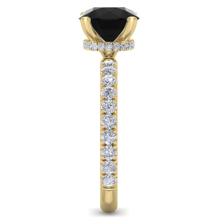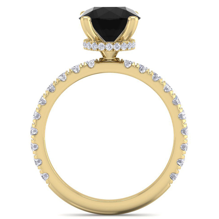 2 1/2 Carat Round Shape Hidden Halo Black Moissanite Engagement Ring In 14 Karat Yellow Gold