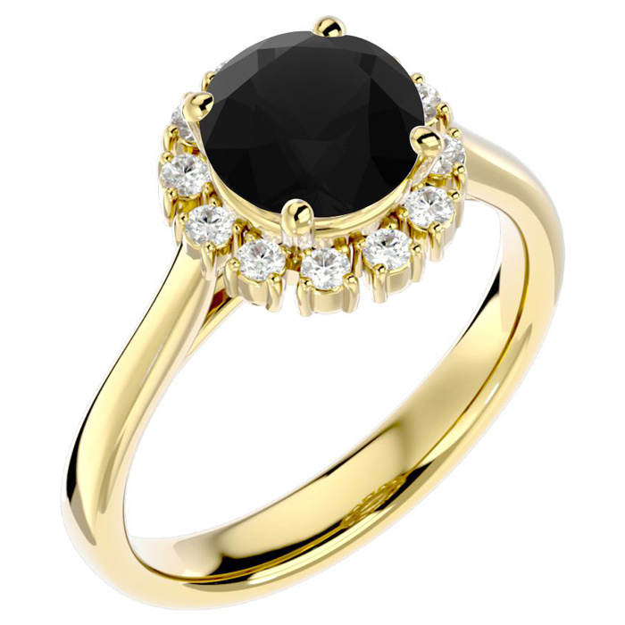 2 1/3 Carat Halo Black Moissanite Engagement Ring In 14 Karat Yellow Gold