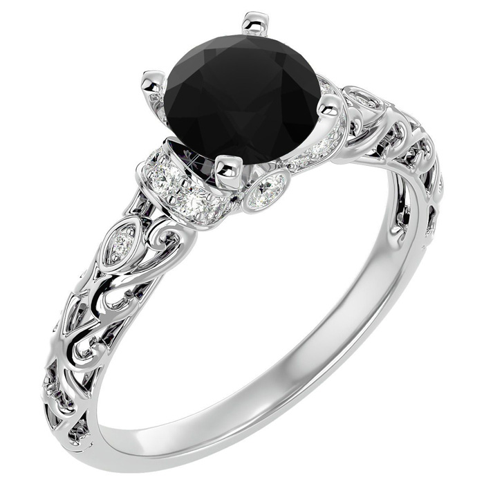 2 1/4 Carat Vintage Black Moissanite Engagement Ring In 14 Karat White Gold
