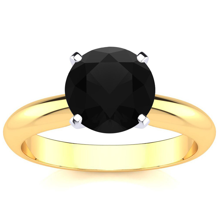 2 Carat Black Moissanite Solitaire Engagement Ring In 14 Karat Yellow Gold